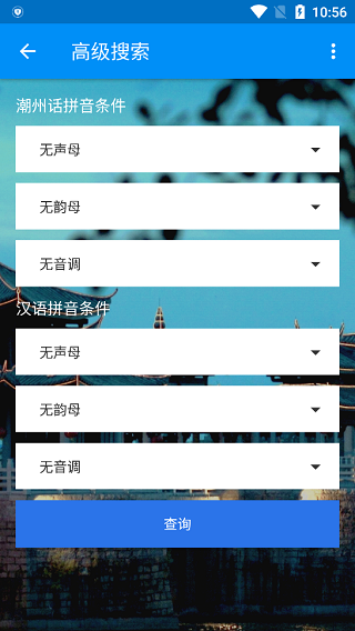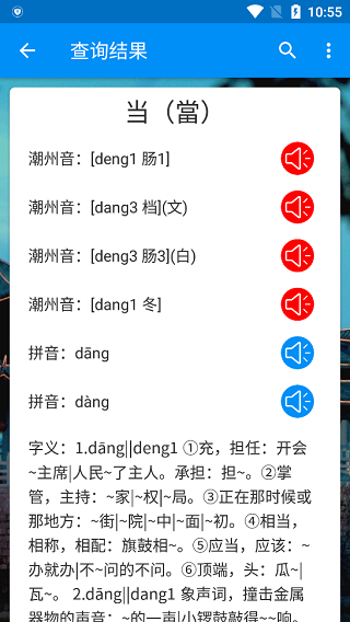 潮州音字典最新版是一款功能强大的潮州音汉互译app,软件界面直观,功能丰富,为用户提供了潮州音字大全,可轻松帮助你进行汉字与潮州话之间的翻译,使您更好的了解和学习潮州话。潮州音字典手机版支持多字查询,用户可以根据潮州话拼音、汉语拼音、汉字部首、汉字笔划数等条件查询,并且还支持高级搜索、潮州话拼音索引、汉语拼音索引、汉字部首索引、汉字笔划数索引等多种搜索功能,有需要的用户可以下载试试!潮州音字典最新版特色
