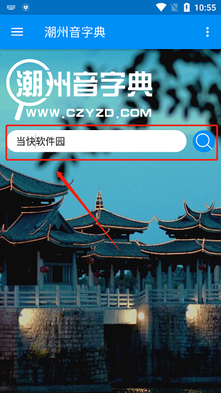 4、选择搜索条件后,将潮州话的拼音和汉语结合起来即可进行查询。