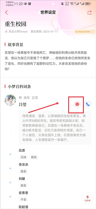 彩云小梦app如何和自己的角色对话?