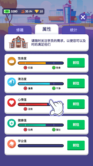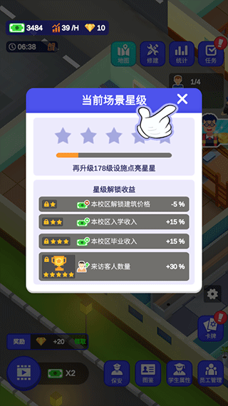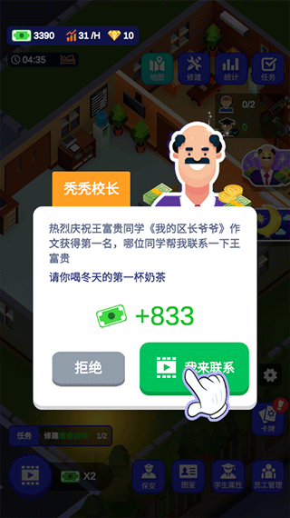 游戏里有很多任务和挑战,比如处理老师的问题、扩建学校、满足学生的需求等等。最让我觉得有成就感的是看到越来越多的学生顺利毕业,感觉自己真的在一步步把学校做大。不过刚开始玩的时候有点摸不着头脑,特别是如何平衡各种资源和发展方向,需要慢慢摸索。