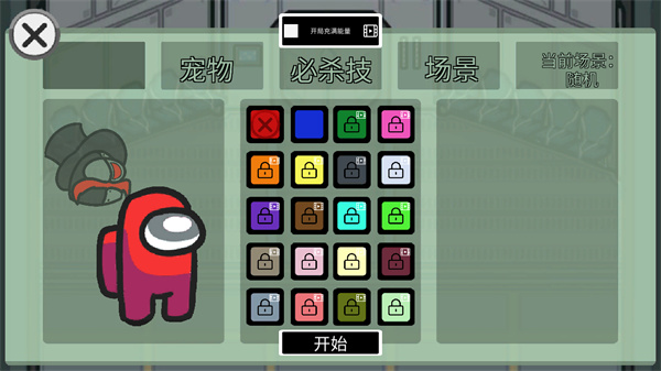 2、进入后,玩家可以自由为角色更换颜色、携带宠物、必杀技等,选择好后点击开始进入游戏;