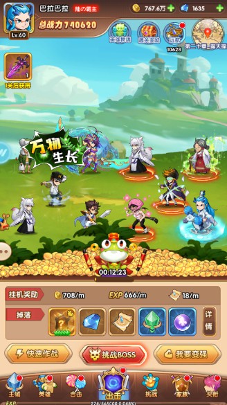 再说说亮点吧,游戏里有超多英雄和各种阵营、定位搭配,脑洞大开的技能特效也是一绝。尤其是主线任务设计得很巧妙,挑战 boss 能提升挂机奖励,完全不用担心升级问题。还有丰富的活动和高额度奖励,光是福利就让我心动了。