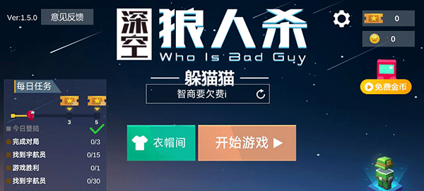 1、下载安装好深空躲猫猫2023最新版本,运行游戏,点击开始游戏;