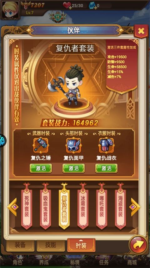 3、时装的每个部位有自己的单件激活属性,其次集齐三件套之后还有额外的套装属性哦!