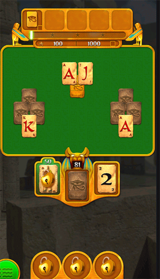 金字塔纸牌传奇游戏,英文名字叫“Pyramid”,是King公司移植到手机上的游戏。玩法类似空当接龙,需要根据纸牌点数连接相邻的牌来消除。游戏背景设定在古埃及,画面风格质朴金色,充满了金字塔和圣甲虫的元素,感觉像是在探索古代奇迹。上手简单但有难度,尤其是要捕捉隐藏线索才能解锁宝藏。