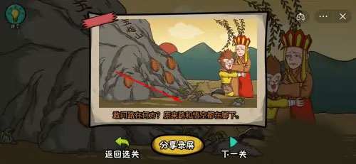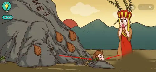 其次,点击唐僧脚下石头缝里的猴毛,孙悟空的头就会顶出来。