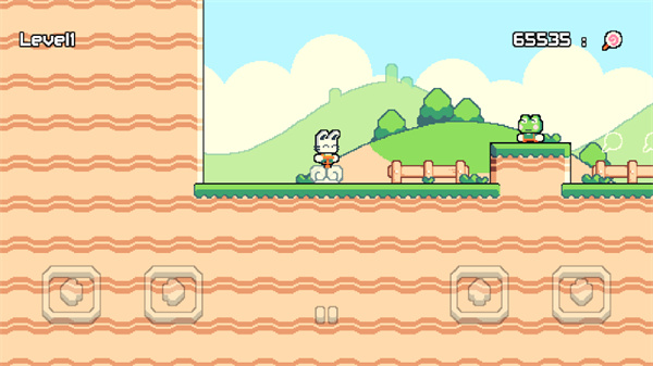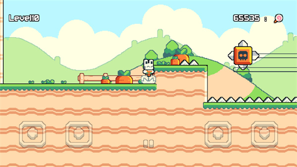 兔兔大冒险是一款采用了像素画风打造的横屏冒险类游戏,画风舒适,玩法经典,期待带给玩家用户最好的游戏体验。游戏内我们将要扮演一只蹦蹦跳跳的小兔子,然后呢通过自己的双腿跳跃来躲避前方的各种陷阱及关卡,直至到达我们想要去的地方。游戏的玩法很简单,既然是采用的横屏模式,所以呢依旧是左手控制着兔子的前进与后退,然后呢右手就是控制兔子的跳跃及下蹲,玩起来不是很难,基本上刚上手的玩家用户也能够轻松把握。此外游戏内有着诸多关卡,每个关卡都会变得越来越难,通关条件也就会变得越来越苛刻,不过相信在玩家用户绝对的实力面前,这些都是虚妄。另外呢本次为大家带来的是兔兔大冒险破解版下载,游戏已经解锁了全部关卡,玩家用户可以随意选择自己喜欢的关卡去进行通关,磨炼自己的技术。