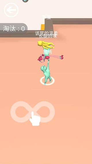 3、玩法很简单,接近其他角色后将其托起,来到边缘把他扔下去;