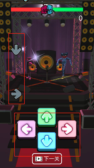 2、屏幕上方会随机出现上下左右四个箭头,玩家要根据屏幕出现的键盘迅速在下面完成所有的手指动作;