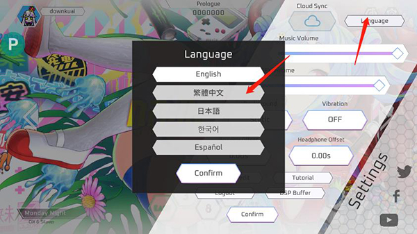 2、选择LANGUAGE在里面选择繁体中文即可切换为中文;