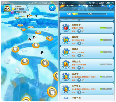 闯关至于,完成某种挑战可以让你得到成就。获取大量小鱼,钻石,金色小花等等丰厚奖励。