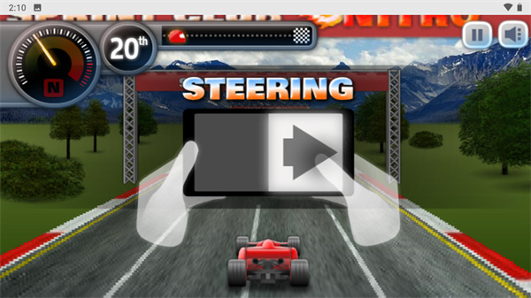 1、劲爆的背景音乐,火爆的赛车体验,带给您前所未有的视听盛宴;2、游戏玩法简单,操作容易上手,体验操作流畅,通过左右键控制赛车;