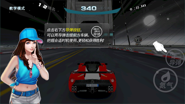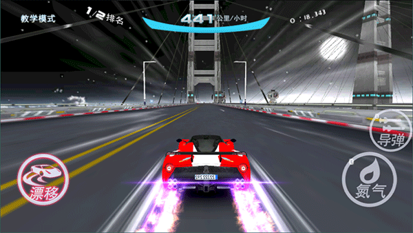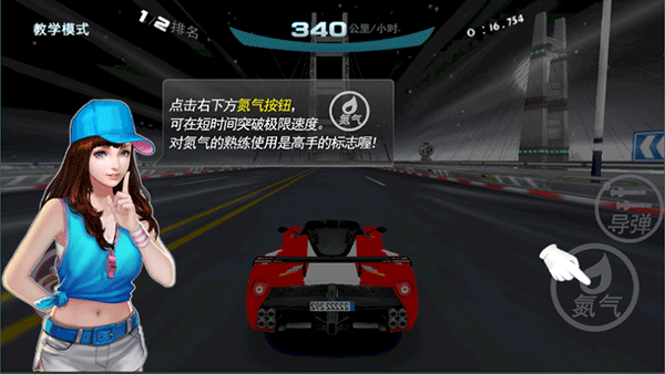 2、点击右下方的“氮气”按钮,可以短时间突破速度极限,体验飞一样的感觉
