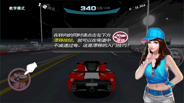 4、临近弯道,在转弯的同时记得点击左下角的“漂移”按钮,这样可以不减速过弯