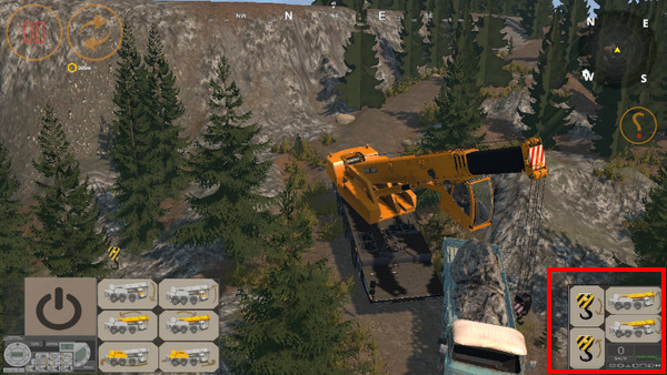 6、多次点击开关,可以切换吊车和泥石运输卡车的操作界面,有前进后退还有左右等操作按键