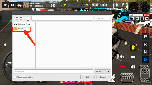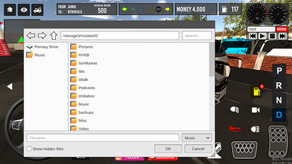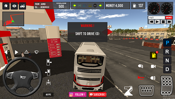 2、左边方向盘顾名思义控制方向,右下角分别为“手刹”“刹车”和“油门”,右上角是仪表盘和油量还有金钱,最后挂“d”挡就可以开动你的公交车了;
