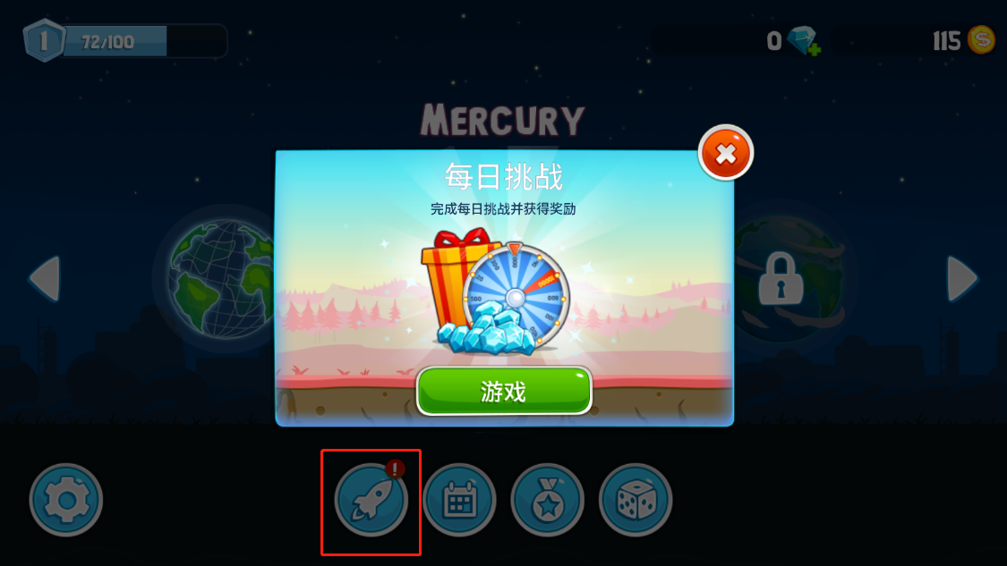 2、点击火箭图标完成每日挑战,可以获得奖励哦;
