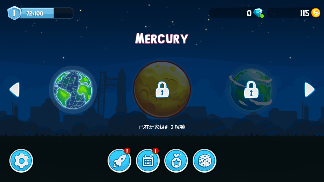 1、首先,我们下载安装好之后,进入游戏,游戏的星球有很多,当玩家的级别达到一定等级的时候就可以解锁下一个星球;