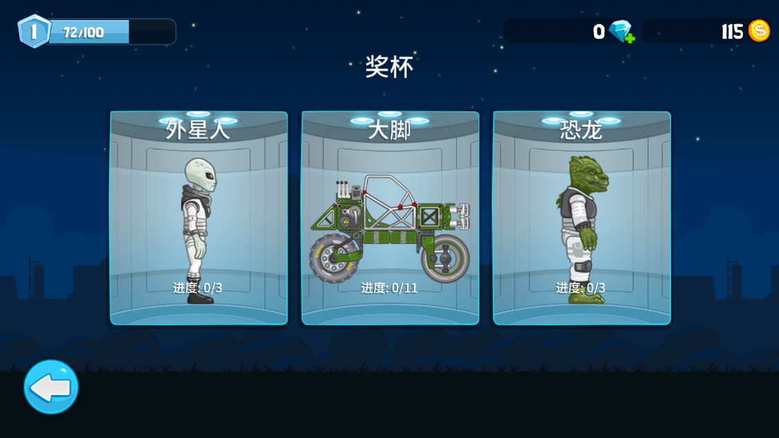 5、接着我们先点击第一个星球,点击旁边的购物车购买装备,可以对自己的赛车进行升级。