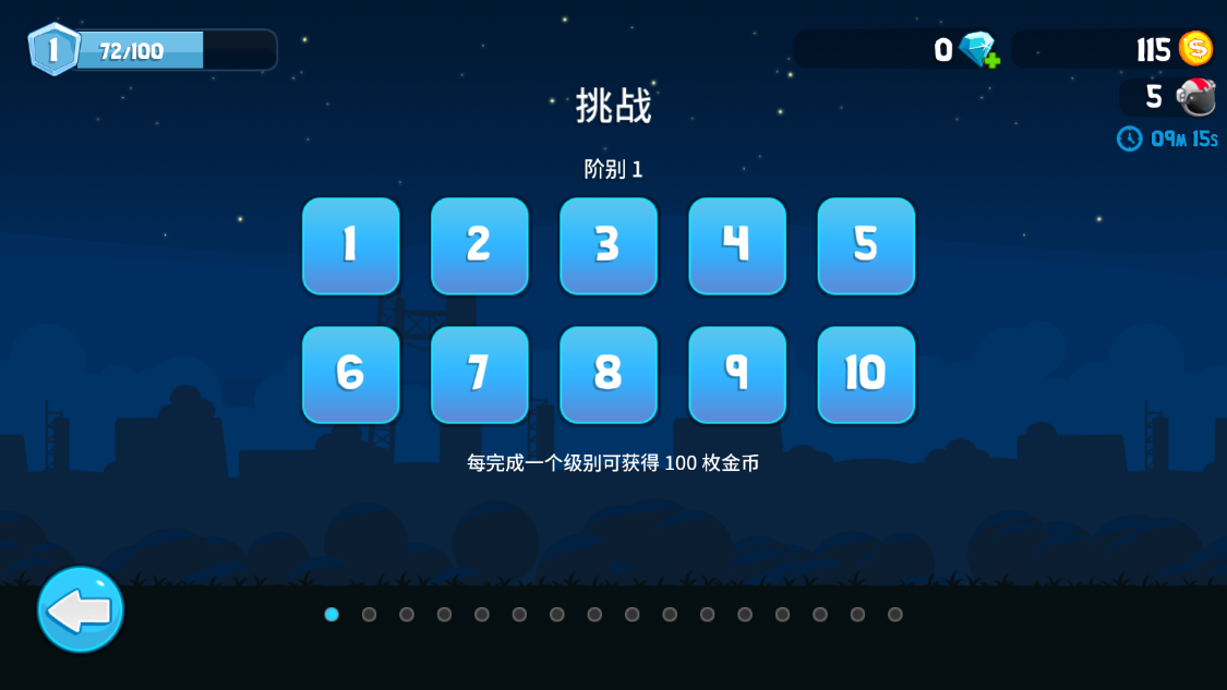 3、点击日历图标,这里有许多挑战,每完成一个级别可以获得100枚金币;