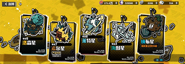 这个是游戏的社交玩法的点睛之笔,众所周知这款游戏是没有pvp的也就意味着很多玩家没有互动的动力,但是解锁了星球之后你就会有六个星球的场景选择,每个星球有一个功能,第一个球里面可以种菜,获取作物还能出售,并且价格不断变化甚至还能去其他好友的地盘偷偷菜,第二个球有游戏还有积分产出,第三个球可以去钓鱼,有排行榜以及稀有的鱼类奖励,第四个星球可以养动物,第五个开启条件苛刻暂时未知,升级高等级的星球奖励加倍更能增加伪核的进阶成功概率,休闲的同时还能提升自己的实力,两不误的玩法选择。