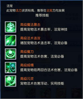 准确地说,法宠的技能标配仍旧是法术连击、法术暴击、魔力、涅槃。由于法宠比攻宠更加吃防御和气血,变异4技能宝宝在后期的法宠中依旧占据了主流。如果你看到的4技能法宠不是这个搭配的,并且也无法判断这只宠物强弱,注意,在打书之前请仔细询问帮派里的老司机。