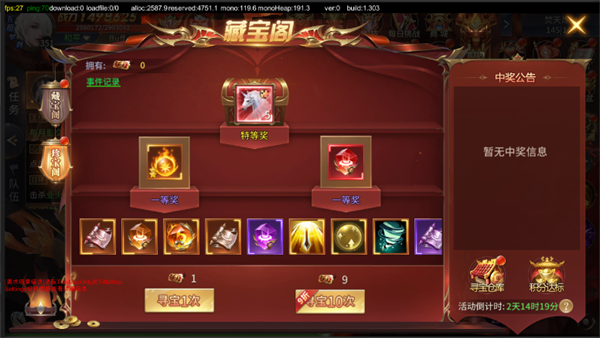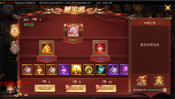 藏宝楼系统分为藏宝阁和珍宝阁,藏宝阁为元宝抽奖系统,珍宝阁为钻石抽奖系统