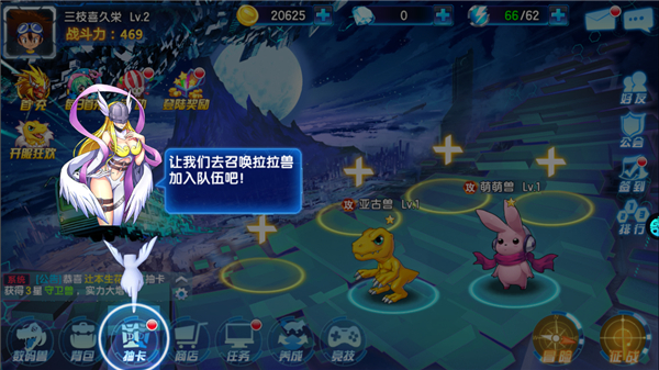 此外,安杜路兽工厂是获取金币和钻石的重要途径,资源会自动产出并存储,但要注意及时领取避免溢出。召唤队友也很简单,通过抽卡系统可以获得拉拉兽等数码兽,并通过强化进阶提升实力。整体来看,《数码大冒险华为版》不仅还原了经典数码宝贝的世界观,还加入了丰富的策略玩法和创新的互动内容,让玩家在战斗中既能感受到怀旧的乐趣,又能体验到策略与操作结合的游戏快感。