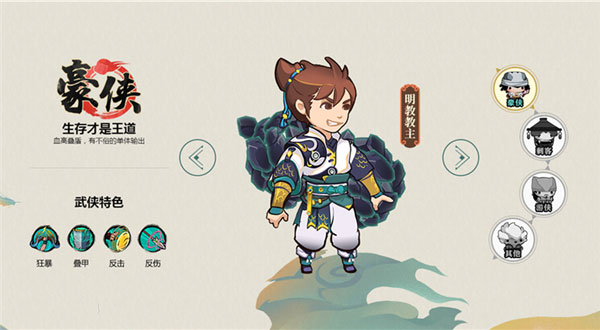 豪侠——生存才是王道:血高叠盾,有不俗的单体输出。