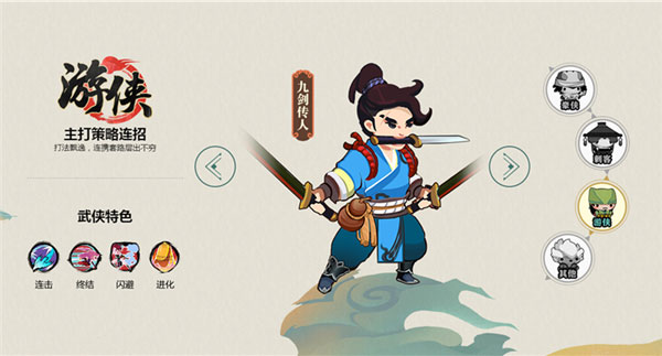 Roguelite DBG为核心玩法(Roguelite属于Roguelike的一种,较为轻度),结合了随机武侠事件、随机道具、冒险、养成等元素,打造了一款相对大众一些并且游戏性更高的策略卡牌游戏。