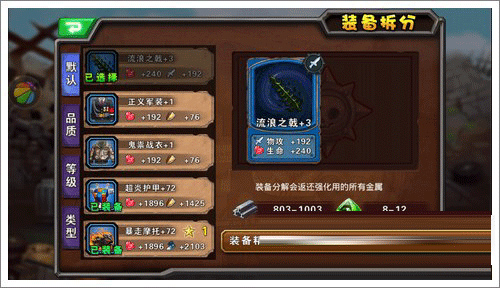 2、分解装备:在超级联盟各个精英副本中都会掉落装备,不可能每件掉落的装备都逞心如意,总有一些用不上的,这时候就可以通过装备系统中的装备拆分,来对多余的装备分解,是不是感觉还挺环保的呢,废物利用呢。