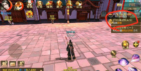 8、把所有任务都做好了,就可以去点屏幕上面 挂机那里接取道心试练,然后去匹配打封魔( 封魔点在挂机处领取不打封魔的时候记得冻结 )。 。把能做的任务都做了去挂一会封魔就到40级了。之后有任务做任务 没了就封魔。~