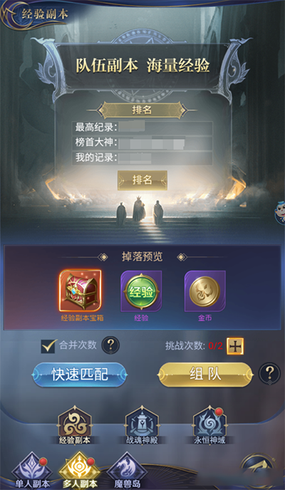 通过游戏内的【副本】入口,勇士们可以通过挑战不同的副本,来获得对应的奖励;