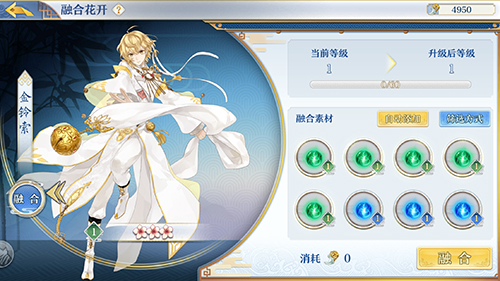 选好融合材料之后在上方能够看到角色融合后的升级状况,记住:融合时会消耗剑玉,请确保剑玉充足。