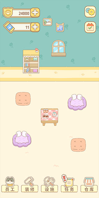 4、当员工累了之后安排其去休息室即可,当金币有了富余也可以适当升级一下休息室的家居