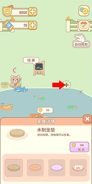 2、之后我们点击下图位置建造下一个木垫,该位置最便宜仅需300