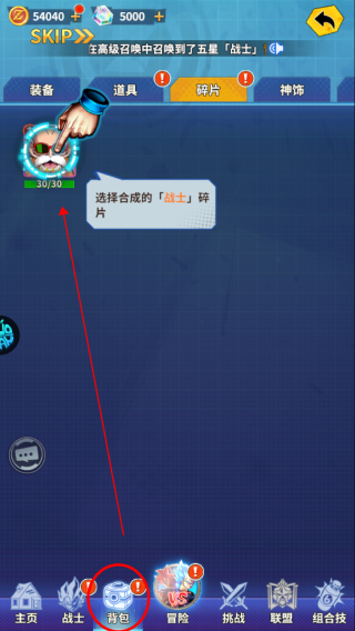 1、点击背包,找到满足合成要求的碎片;
