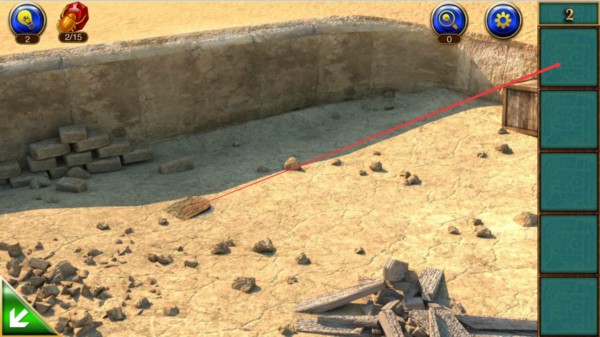 2、捡起铁锹跟木棍组合起来,将旁边的宝石捡起来,密室逃脱11逃出神秘金字塔一共15颗宝石,要仔细收集,不然无法打开神秘关卡,后面一定要仔细收集宝石,不然过了18关,又得重新回去到处找宝石,非常的蛋疼。