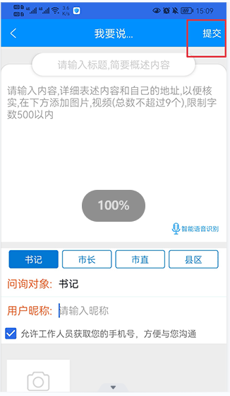 2、将内容编辑完成后点击提交即可,之后等待答复就可以了。