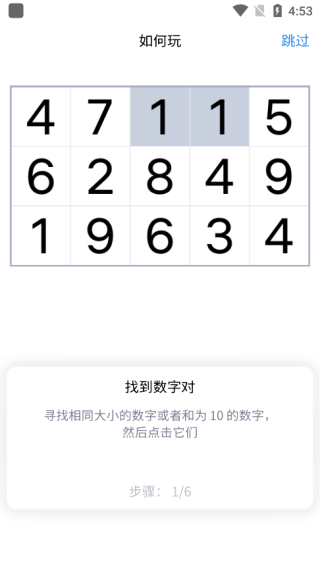 • 找到数字网格中相同的数字对(1 和 1、7 和 7)或者和为 10(6 和 4、8 和 2)的数字对。