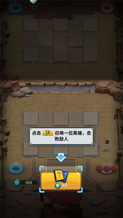 2、点击下方放置,召唤一个英雄,攻击敌方;