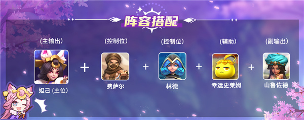 阵容一:费萨尔、林德、妲己、幸运史莱姆、山鲁左德