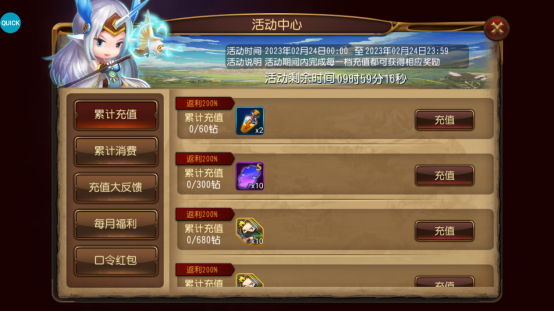 玩家如果有充值或者消费到一定金额,可以点开活动中心图标,可以领取大量的极品道具