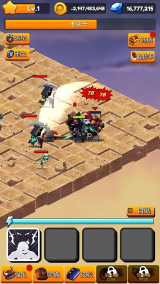 4、解锁和强化技能装备神装穿戴,击败各种怪物;