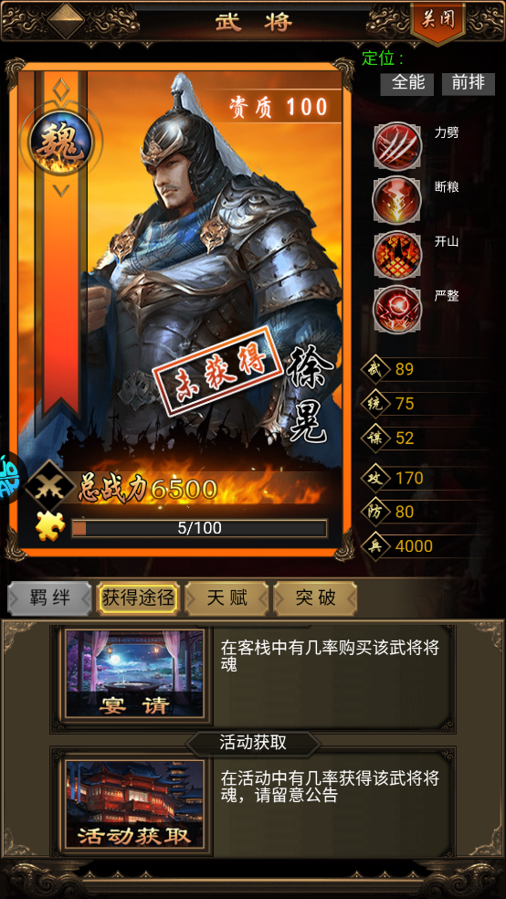 获取途径:功勋商场、酒馆、宴请、活动获取