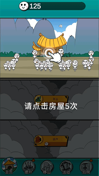 6、前期的移山效率了解后,紧接着便是子孙的创造,回到主页,点击房屋即可创造源源不断的子孙;