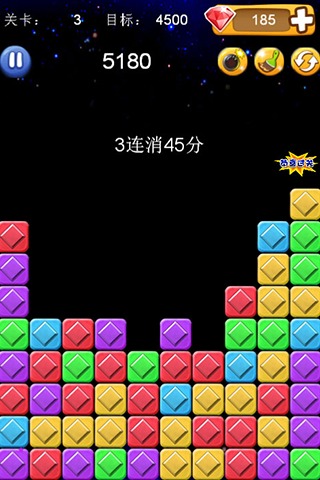 3、同时消除的方块越多分值越高。但你过完多关后还想完的话需要购买道具哦但你过完多关后还想完的话需要购买道具。