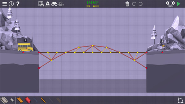 桥梁构造者2中文版是一款模拟建筑桥梁手机游戏,采用了真实的物理引擎和逼真的3D建模打造,玩家在游戏中扮演一位专业的桥梁建筑工程师,需要考虑各种因素,包括地形的起伏、河流的宽度和深度,以及预算限制等。游戏的主要目标是为各种不同的地形设计和搭建完美的桥梁,以打通道路帮助车辆通行,玩家可以运用丰富的物理原理知识,解决各种难题,创建自己的桥梁设计,并确保设计合理、稳固可靠。通过玩游戏,玩家能够学习到桥梁建筑的基本原理和技巧,培养自己的逻辑思维能力和创造力。有喜欢的玩家赶快下载体验吧,展现你的桥梁建造才华!