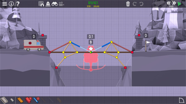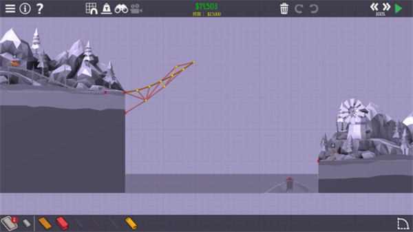 6、然后就是选择这里的材料来搭建你的桥即可但是要记得材料是有限的。