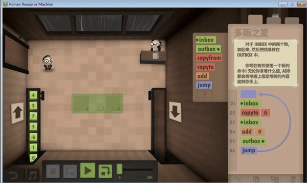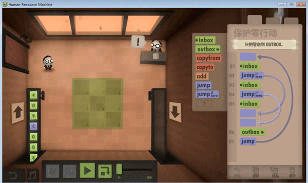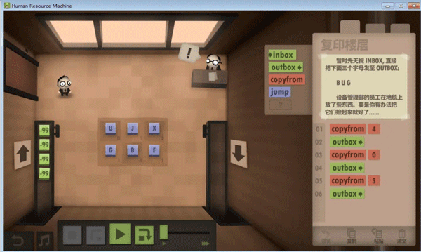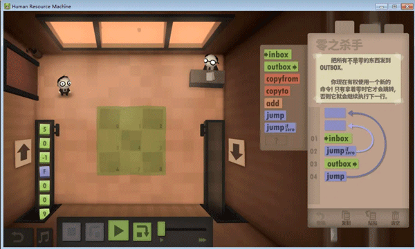 这个游戏真的挺有意思的,名字叫《人力资源机器》,其实就是个小职员升职记的游戏。一开始你只是一个底层小员工,老板会布置各种任务,你需要通过编程来自动化完成这些任务,成功后就能升职到更高的楼层,一直往上爬,直到顶层。虽然听起来像是编程游戏,但其实完全不用担心自己是不是懂编程,因为这里的编程被简化得很厉害,基本上就是拖拽命令解决问题,简单又有趣。
